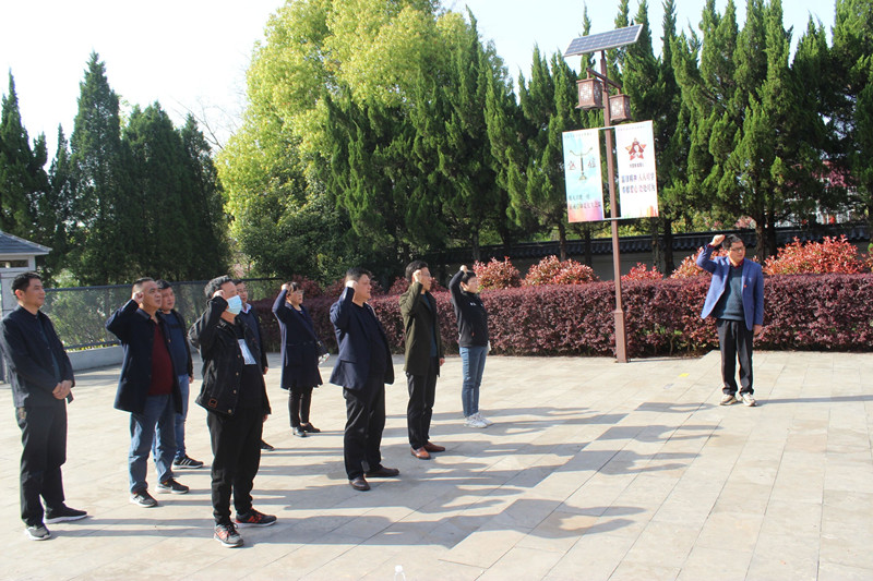 在许继慎将军雕像前,党员代表敬献花篮鞠躬致敬。鲜花代表了对烈士的无限怀念,深深的鞠躬饱含了对烈士崇高的敬意。随后,大家怀着无比崇敬的心情向烈士们默哀,并重温入党誓词,坚定入党时的理想信念。