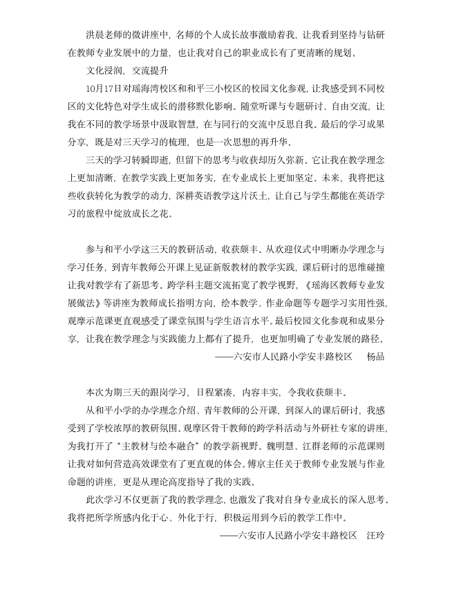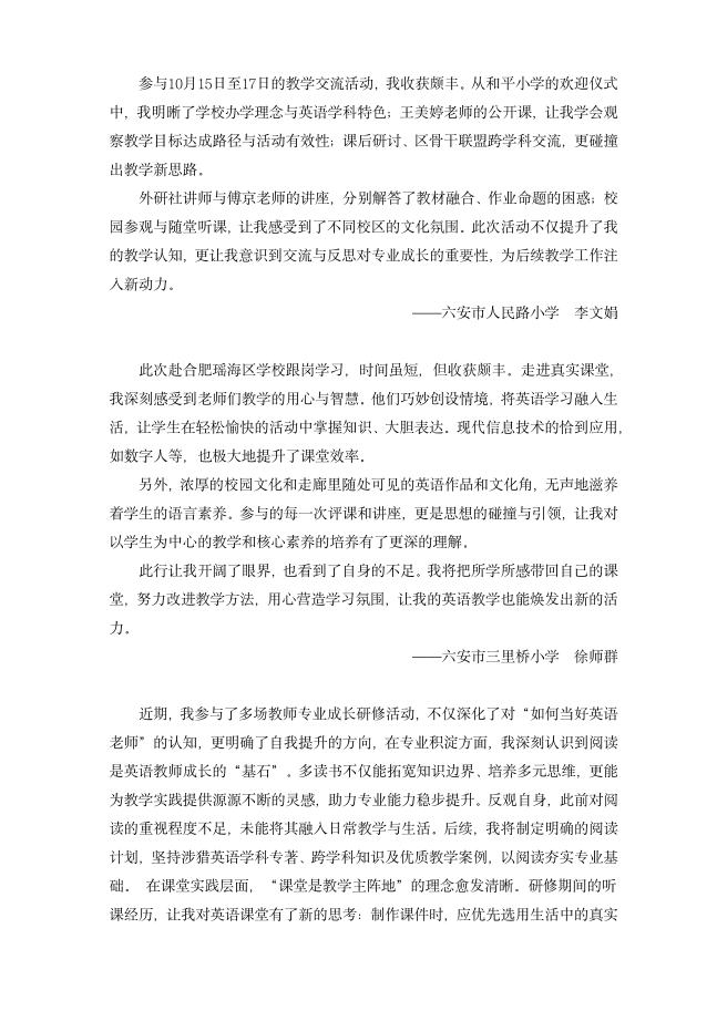 金安区2025年小学英语骨干教师跟岗研修简报一