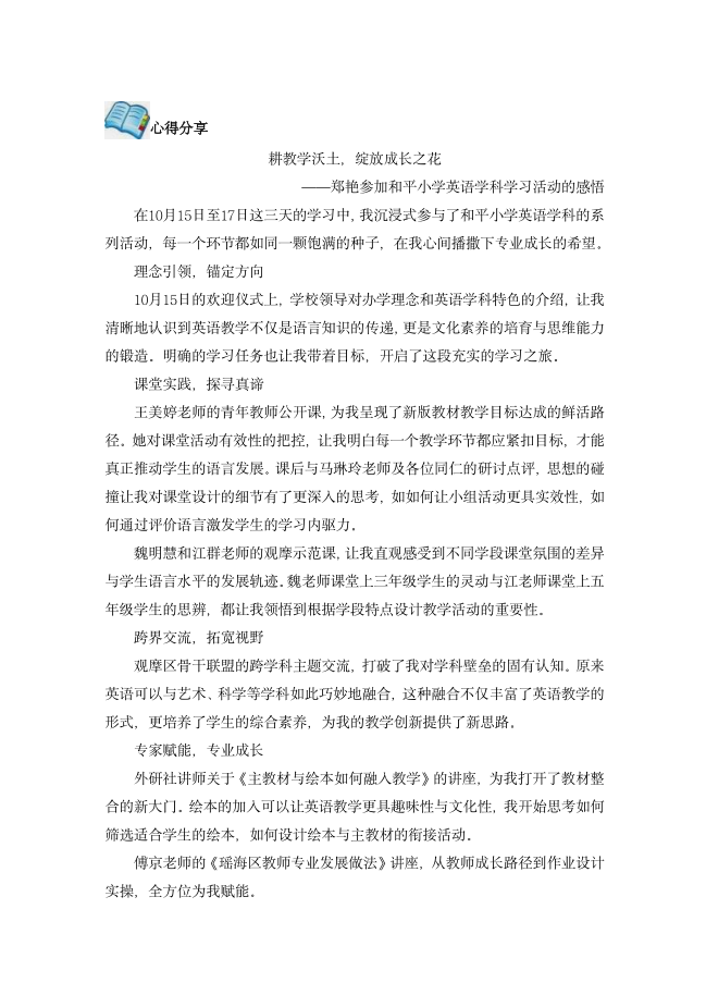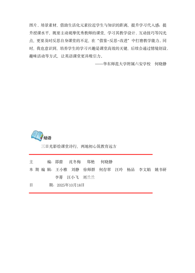 编辑日期:2025/10/20 来源:中心 作者:小学英语骨干教师跟岗研修班 阅读次数: 次